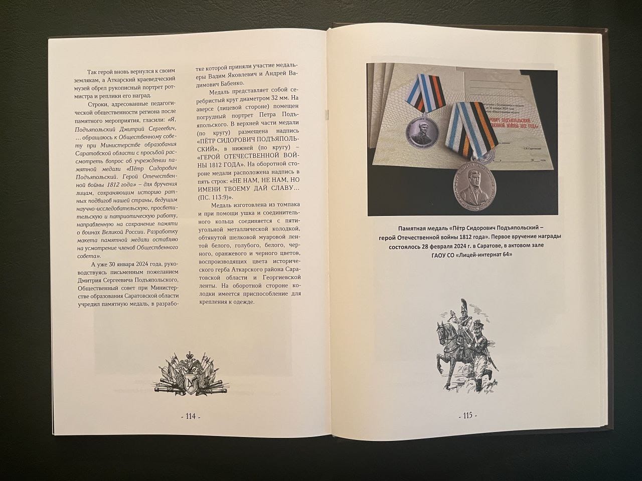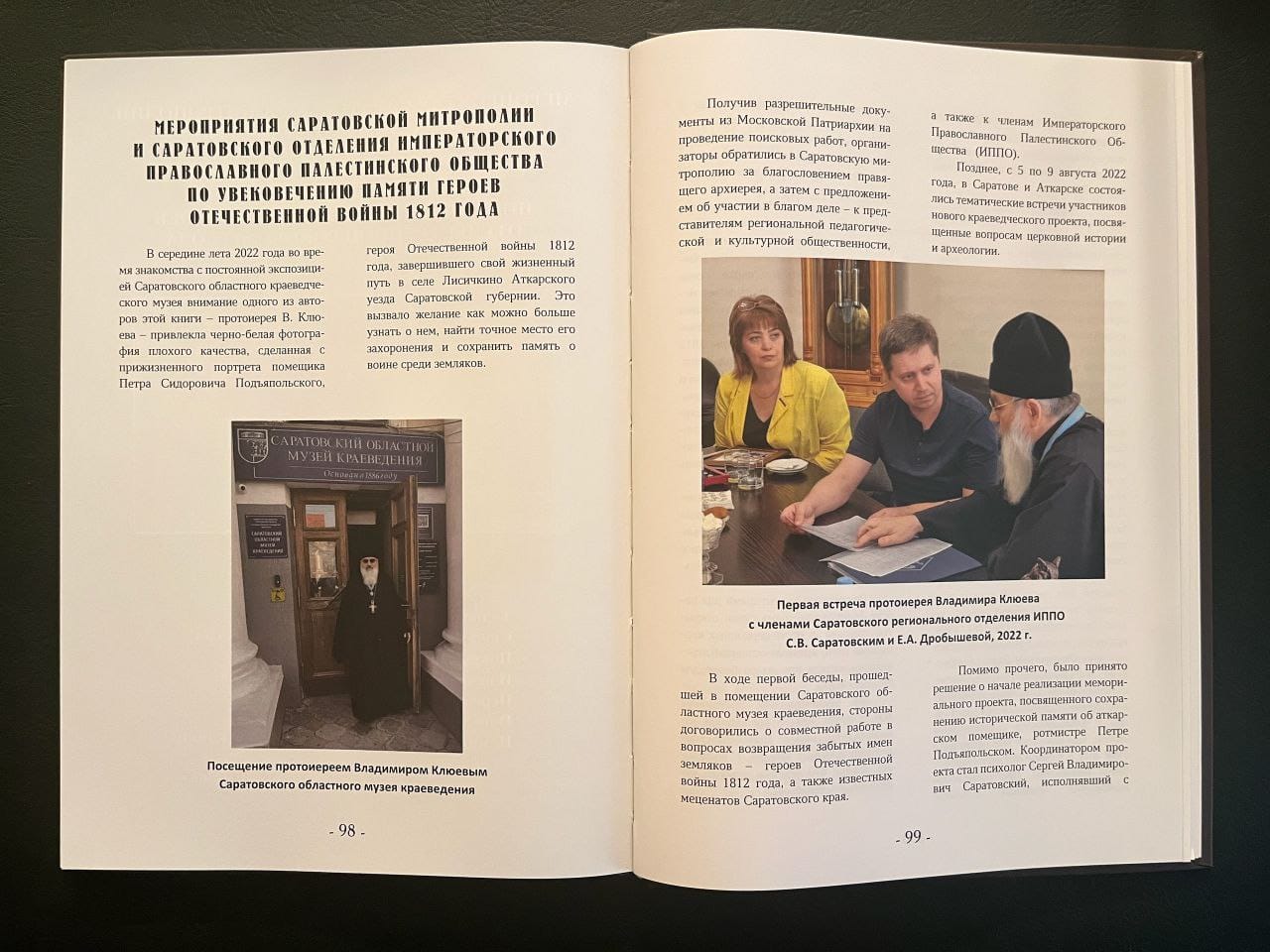 В Саратове анонсировали выход в свет уникального издания, посвящённого памяти героя Отечественной войны 1812-го года, ротмистра Литовского уланского полка Петра Сидоровича Подъяпольского – храмоздателя церкви Рождества Христова в селе Лисичкино Аткарского уезда Саратовской губернии.