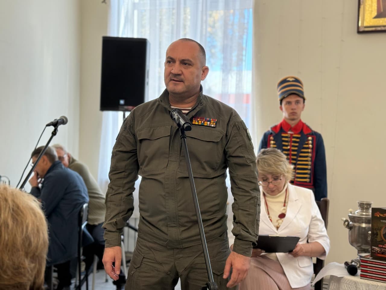 Депутат Саратовской областной Думы, член Общественного совета при Министерстве обороны России, президент медиахолдинга «Ветеранские вести», ветеран боевых действий, полковник запаса Вячеслав Калинин принял участие в презентации книги «Ротмистр Пётр Подъяпольский», которая состоялась 1 октября 2025 года в Аткарске.
